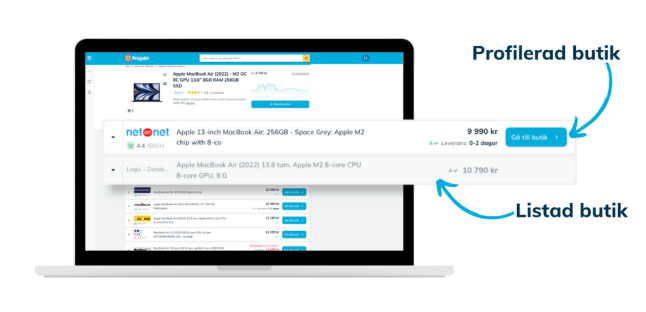 Som listad butik visas du i våra produktlistningar med prisinformation, men utan möjlighet att leda trafik direkt till din butik.